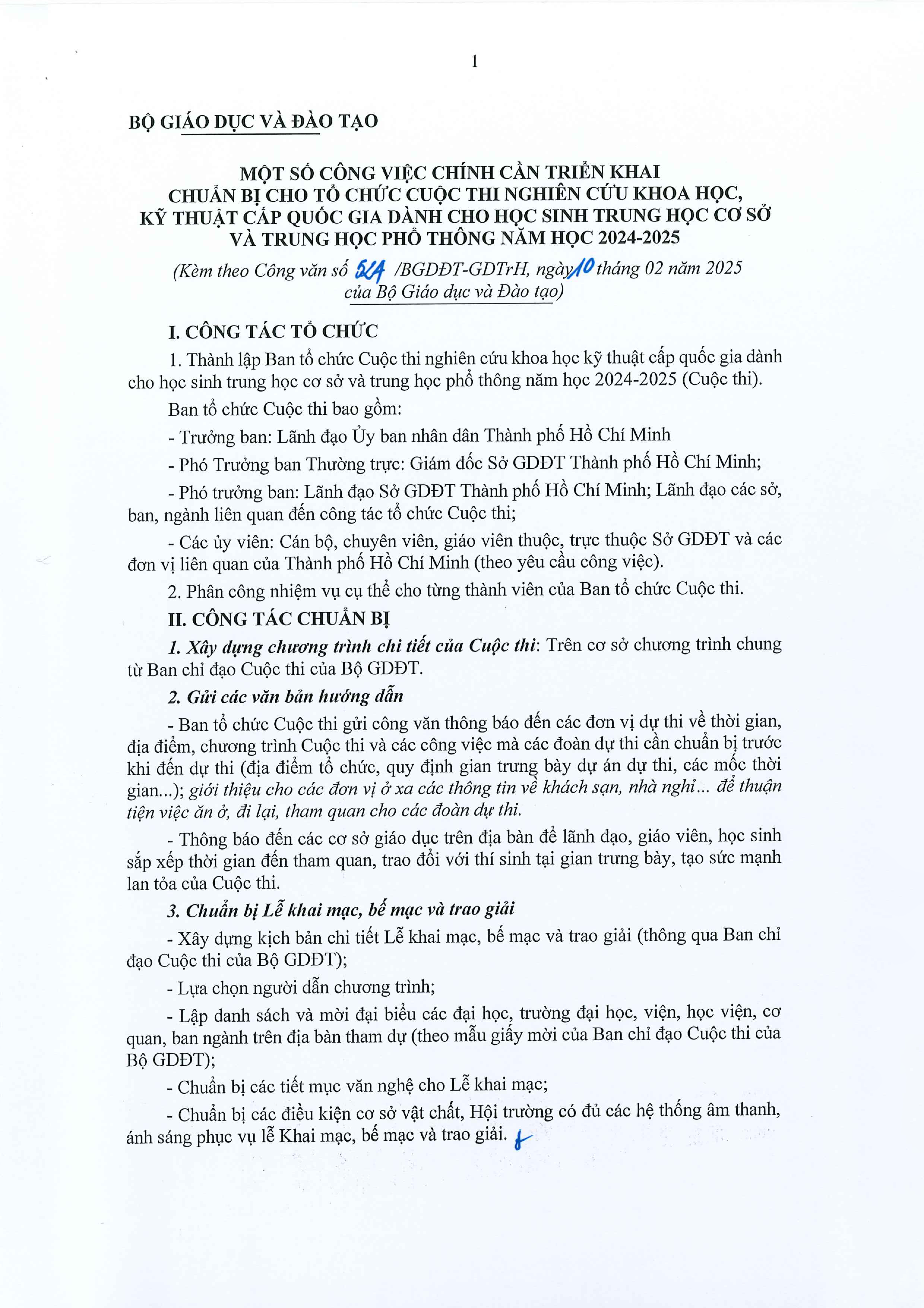 Công văn của Bộ GDĐT về tổ chức Cuộc thi năm học 2024-2025
