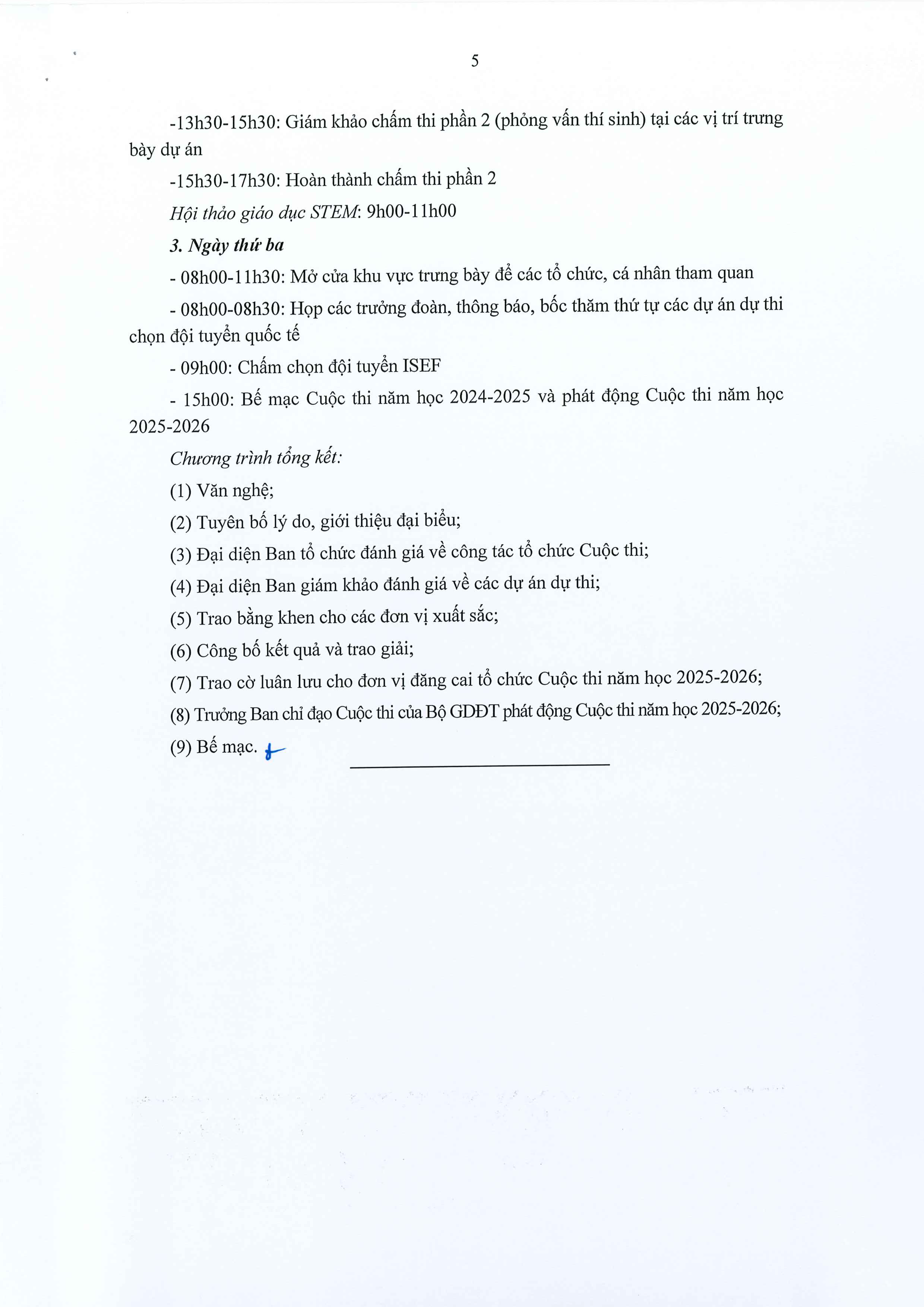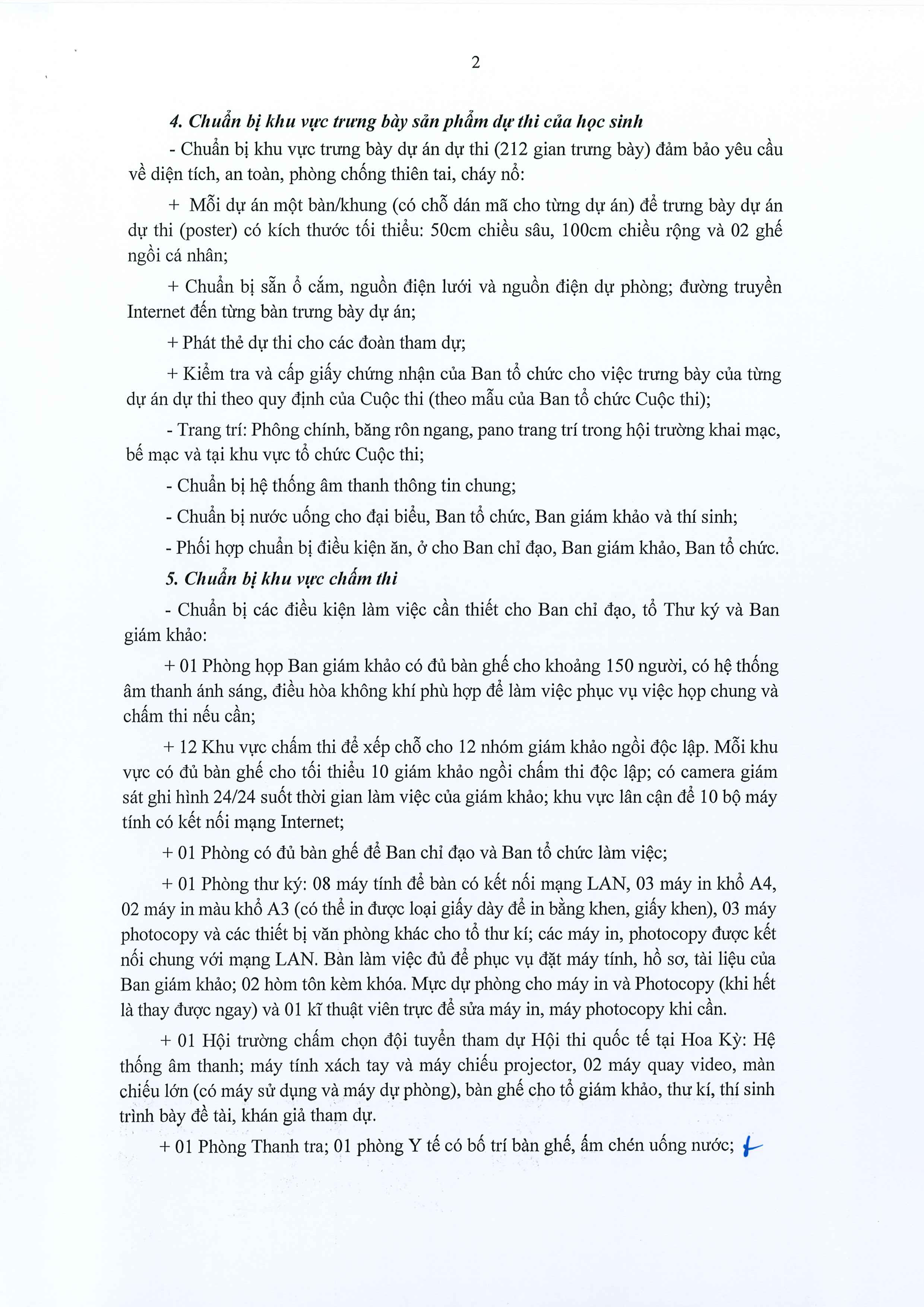 Kế hoạch tổ chức Cuộc thi năm học 2024 - 2025 và tham gia Hội thi nghiên cứu KHKT quốc tế tại Hoa Kỳ năm 2025